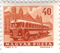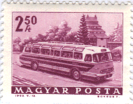 | Der Großteil dieser Briefmarkenmotive, mit Fahrzeugen der IKARUS Karosserie und Fahrzeugwerke Budapest, wurde 1963 aufgelegt.Das Motiv 2 erschien bereits ca.1956.